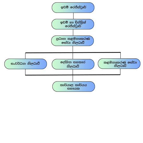 - හිමිකම් ලියාපදිංචිය සිදුකරන කාර්යාල වල බිම්සවිය යටතේ වන හිමිකම සහතික නිකුත් කිරිම හා ඒවාට අදාල පසු ගනුදෙනු කටයුතු සිදු කිරීම