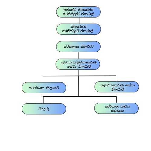 - සේවක සංඛ්යාව කළමනාකරණය, පුරප්පාඩු පිරවීම, සේවා ව්යවස්ථා සංශෝධනය, බදවාගැනීම, උසස් කිරීම් හා ස්ථාන මාරු පිළිබදව කටයුතු